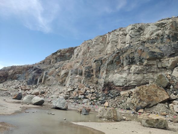 G526(江南至北部)快速通道建設需回填方量約1000萬立方米(折約2500萬噸),為此設立岱山縣岱西鎮雙合社區牛山建筑用石料(凝灰巖)礦采礦權。岱山縣筑地土地開發有限公司取得采礦權,于2018330取得了浙江省自然資源廳頒發的采礦許可證(證號:C3309212018037120146019),開采礦種:建筑用石料(凝灰巖),有效期至2023930,開采規模:260萬立方米/年,為工程礦山。礦山于20196月通過安全設施竣工驗收,投入正式開采。目前因G526(江南至北部)快速通道已無石料需求,剩余石料運往青黑臨時堆場堆置。