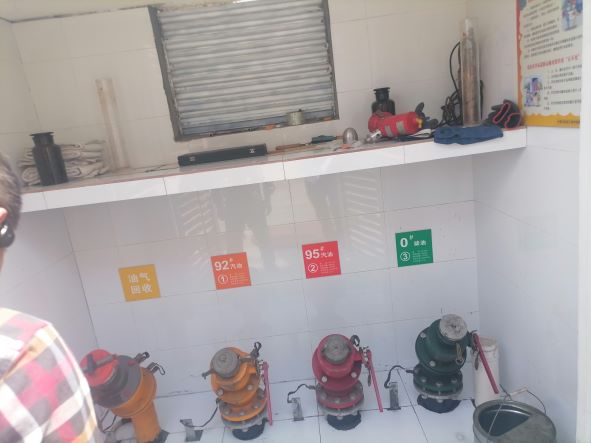 加油站設置汽油卸油和加油油氣回收系統。加油區設置加油罩棚,罩棚為鋼結構罩棚。罩棚下設置2臺雙油品四槍潛油泵型加油機(汽油加油槍帶油氣回收);埋地罐區(車道罐)設有3只的FF (內外玻璃纖維增強塑料)油罐,分別為130m³92#汽油罐、130m³95#汽油罐、120m³0#柴油罐,油罐總容積折算為70m³(柴油罐折半計入),根據《汽車加油加氣加氫站技術標準》GB50156-2021的相關規定,該加油站為三級加油站。
